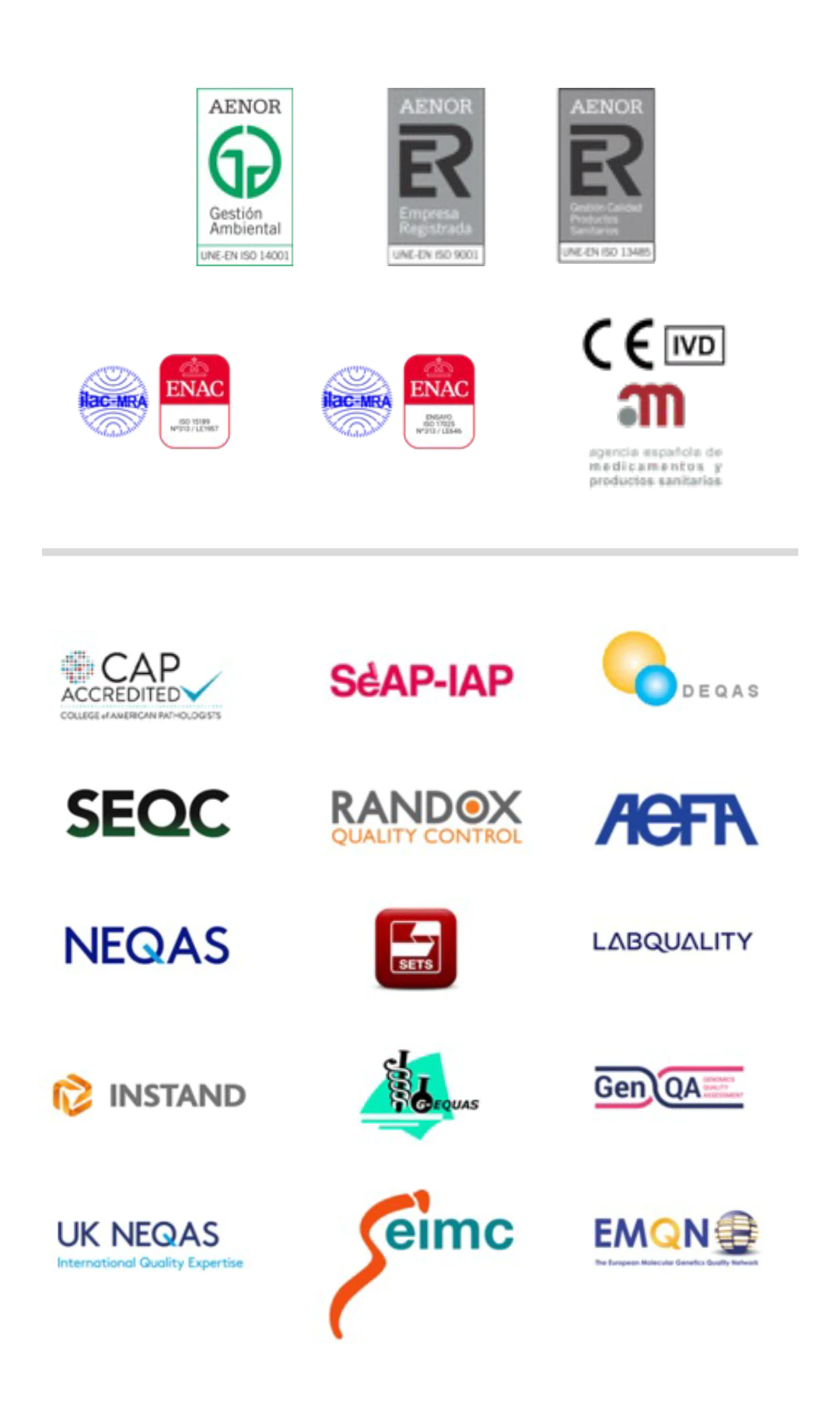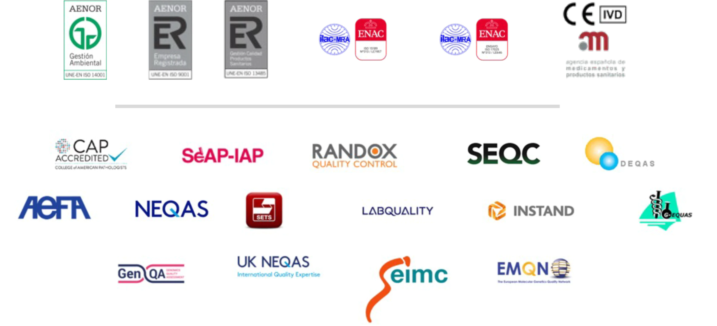 Eurofins satisface las necesidades de sus clientes cumpliendo con unos niveles de calidad estandarizados y demostrables, basados en ISO 9001, ISO 14001, ISO 15189, ISO 17025, ISO 45001 según proceda. Ello incluye el cumplimiento de todos los requisitos legales y reglamentarios aplicables.
